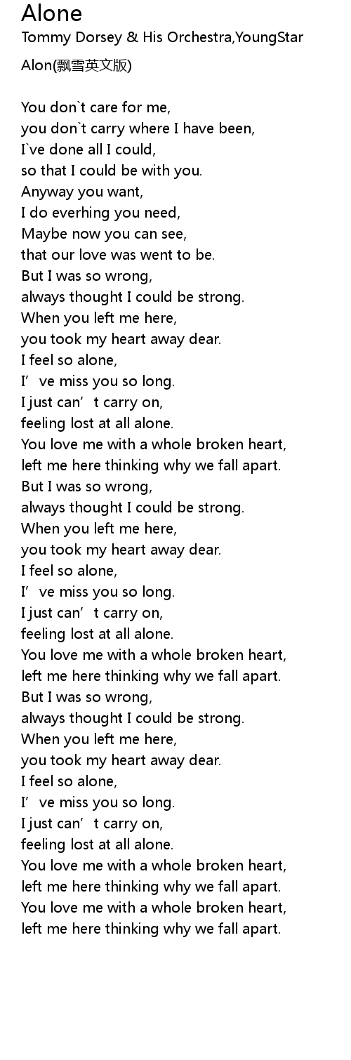 | I feel so alone, | |