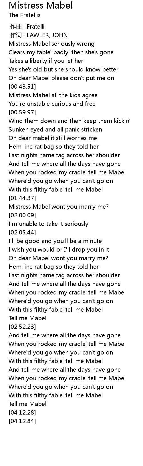 | [02:49.68] | Tell me Mabel |