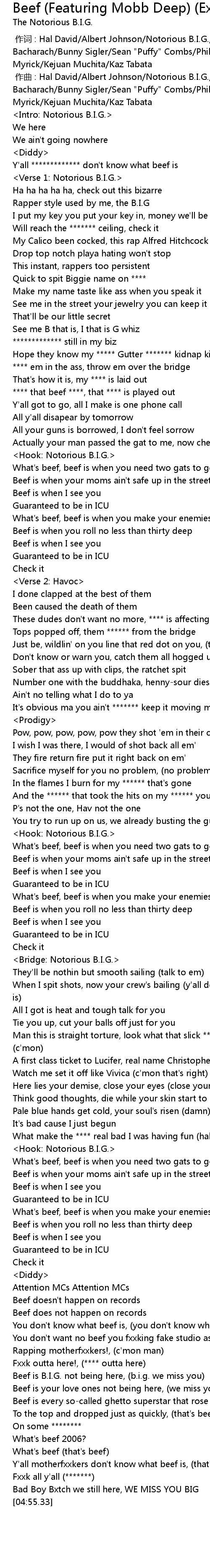 | [04:12.50] | Beef is B.I.G. not being here, (b.i.g. we miss you) |