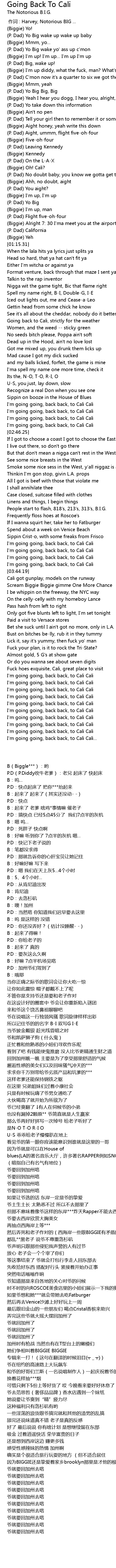 | [02:56.70] | 再抽点西海岸上等*** 然后弄死和老子作对的(西海岸一些跟BIGGIE有矛盾的人) |