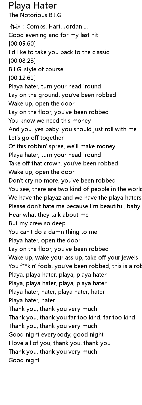 | [03:02.76] | Playa hater, hater, playa hater, hater |