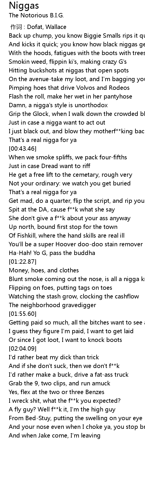| [00:14.36] | And kicks it quick you know how black niggas get |