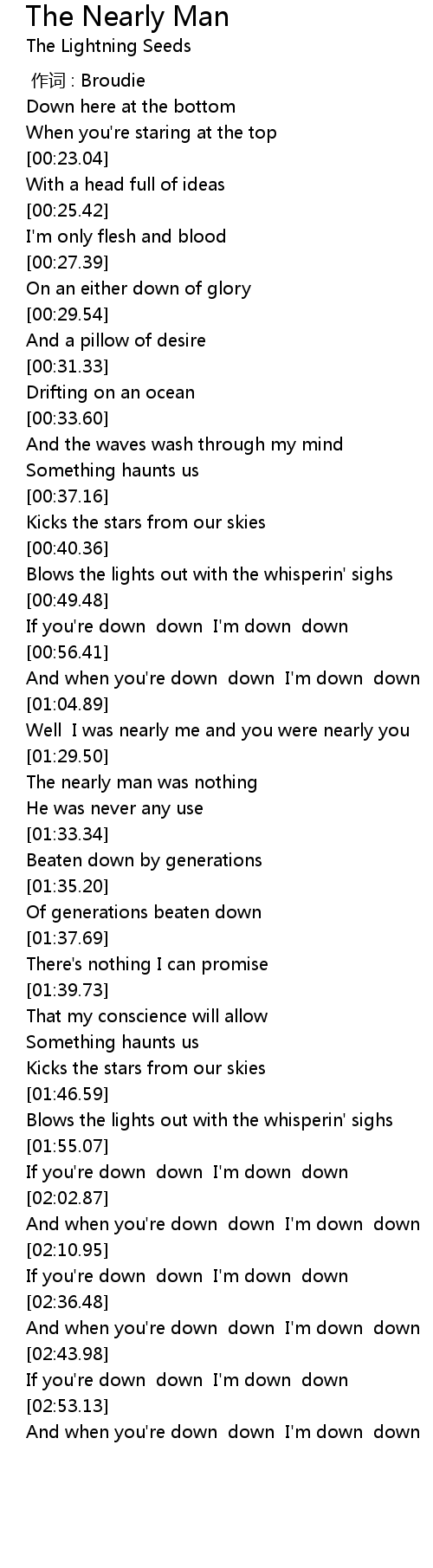 | [01:26.09] | Well I was nearly me and you were nearly you |