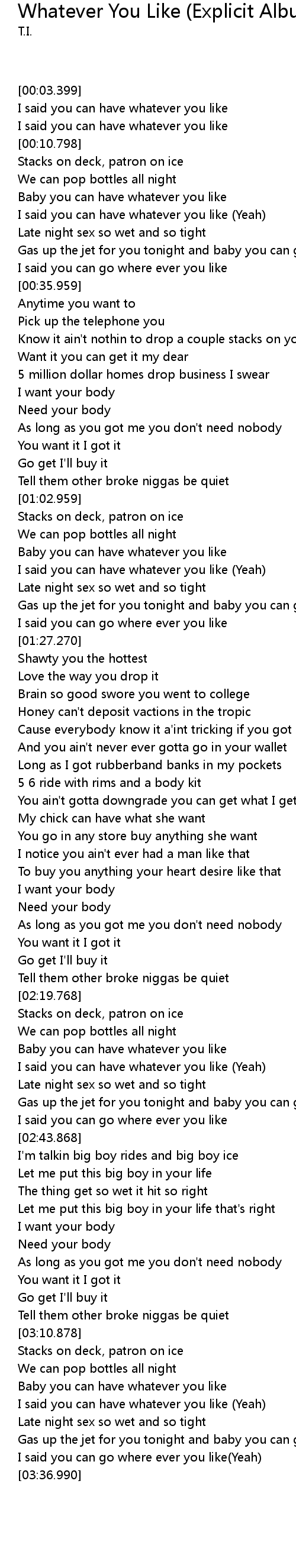 | 歌曲 | Whatever You Like (Explicit Album Version) |