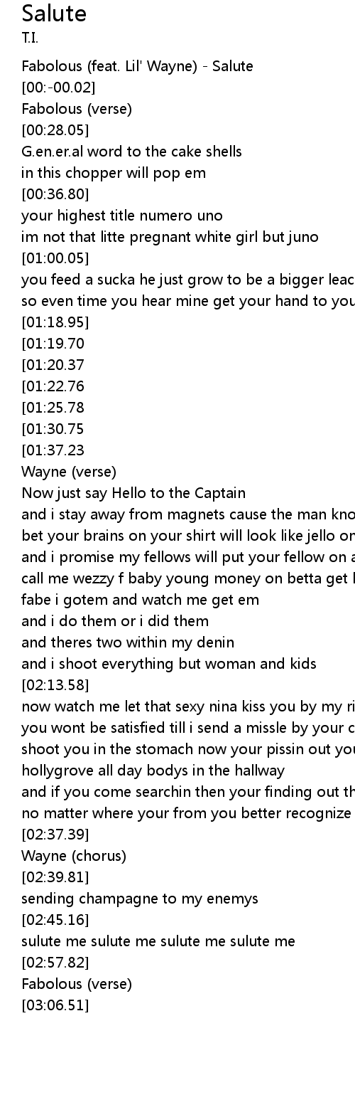 | [00:-07.52] | Fabolous (feat. Lil' Wayne) - Salute |