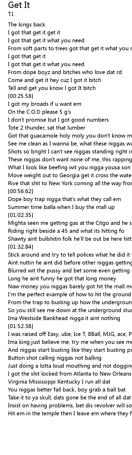 | [00:20.84] | Come and get it hey cuz I got it bitch |