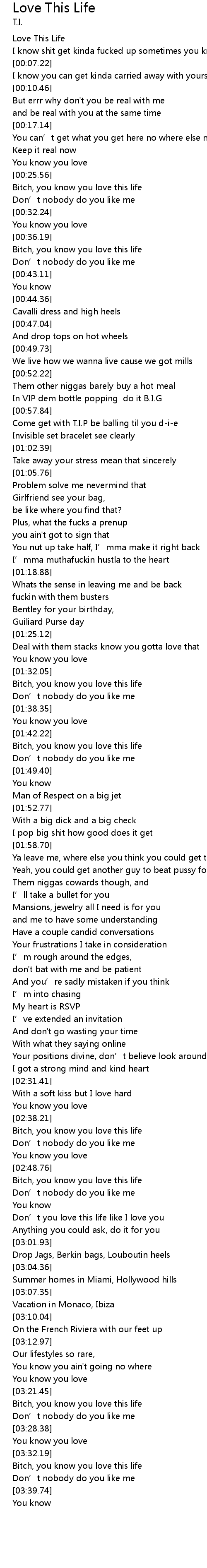 | [03:34.62] | Bitch, you know you love this life |