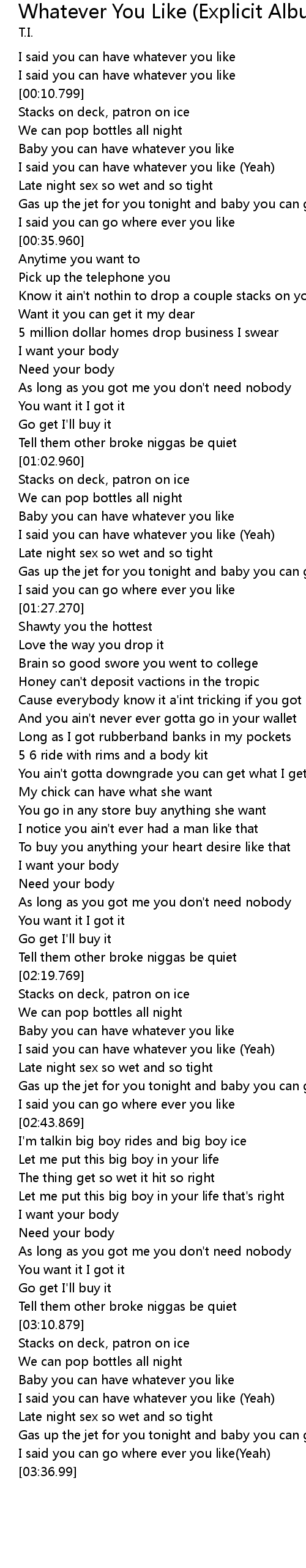 | [03:19.79] | I said you can have whatever you like (Yeah) |