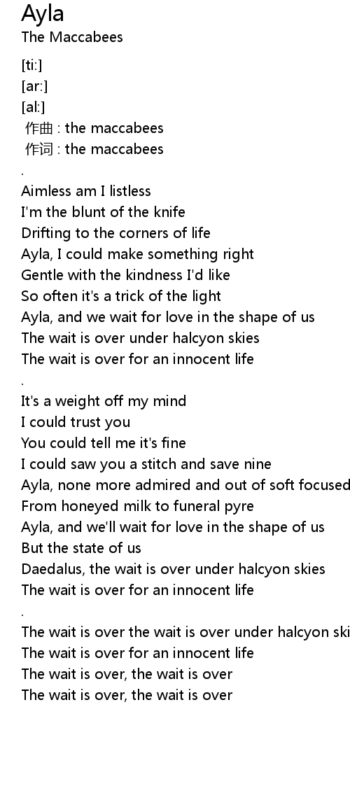 | [01:53.02] | Ayla, and we' ll wait for love in the shape of us |