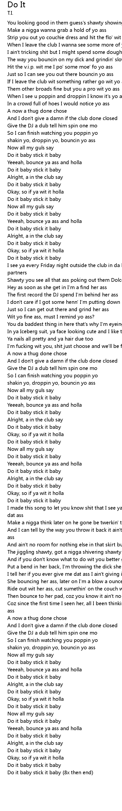 Do it baby stick it baby (8x then end) |