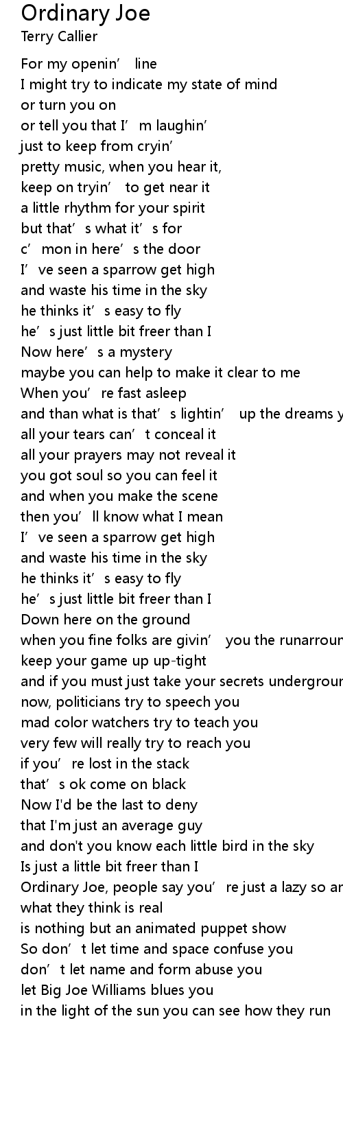 | Ordinary Joe, people say you’re just a lazy so and so | |