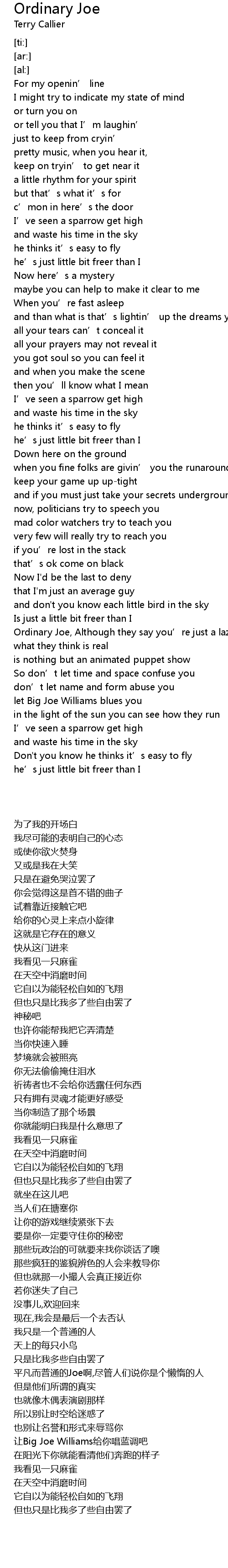 | [02:59.10] | 平凡而普通的Joe啊,尽管人们说你是个懒惰的人 |