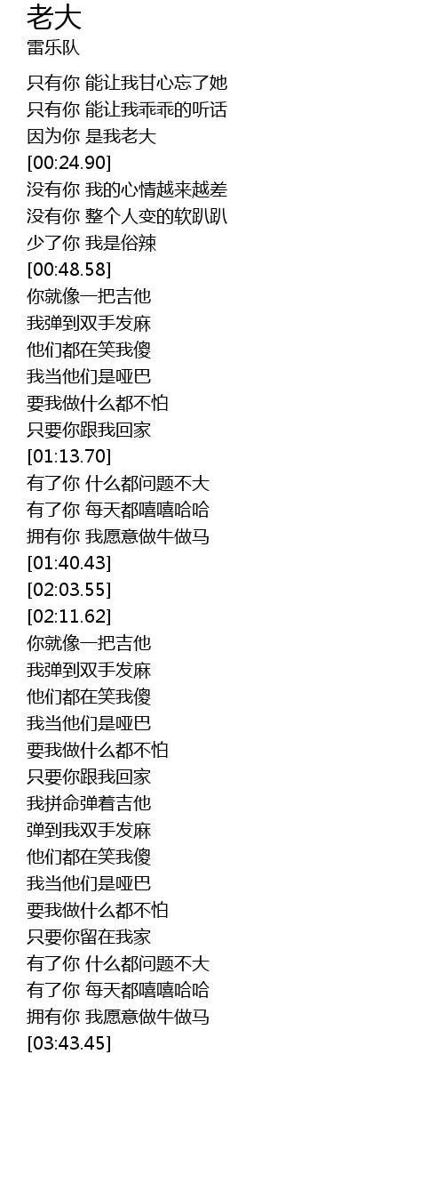 | [03:25.33] | 有了你 每天都嘻嘻哈哈 |