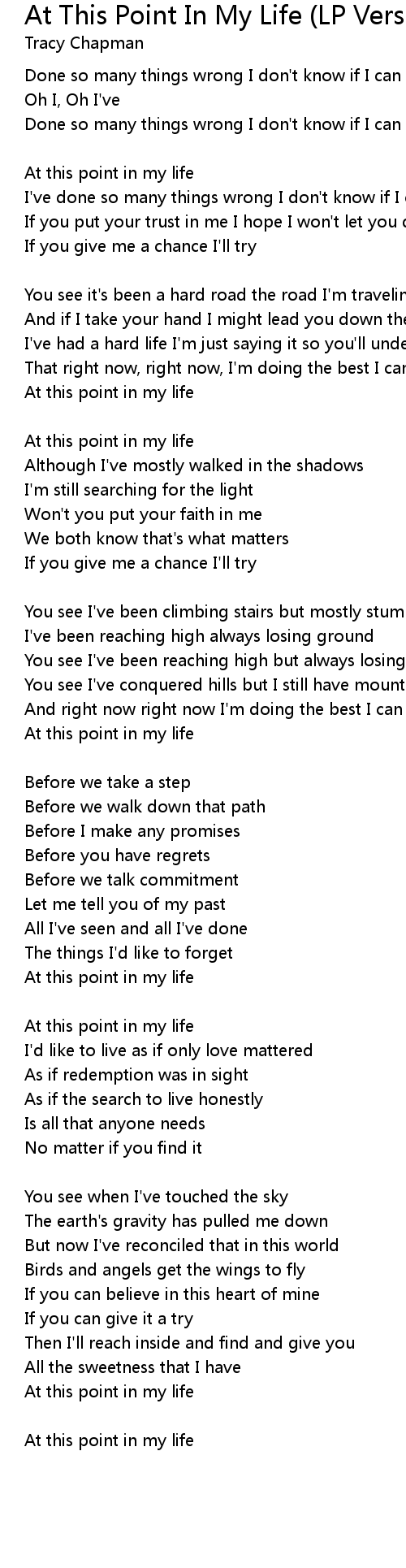 At this point in my life |