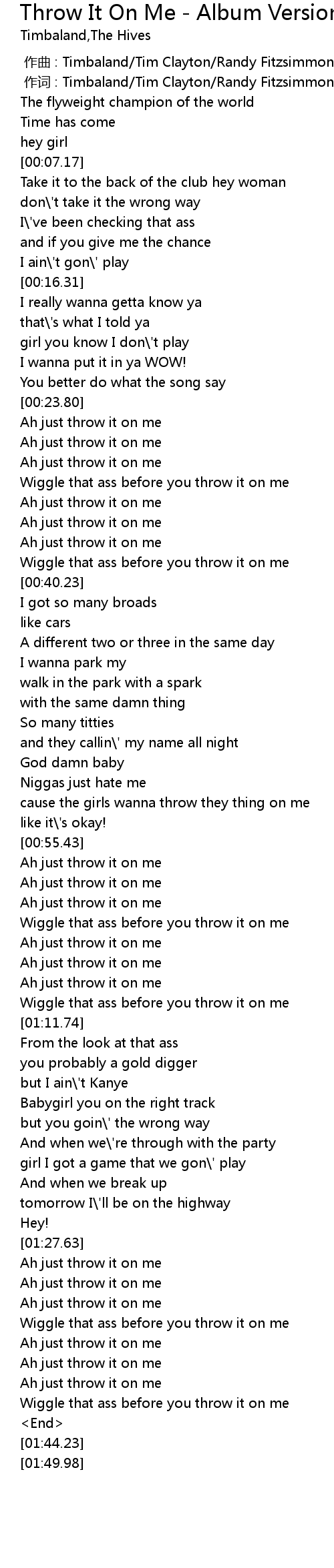 | [01:33.12] | Wiggle that ass before you throw it on me |