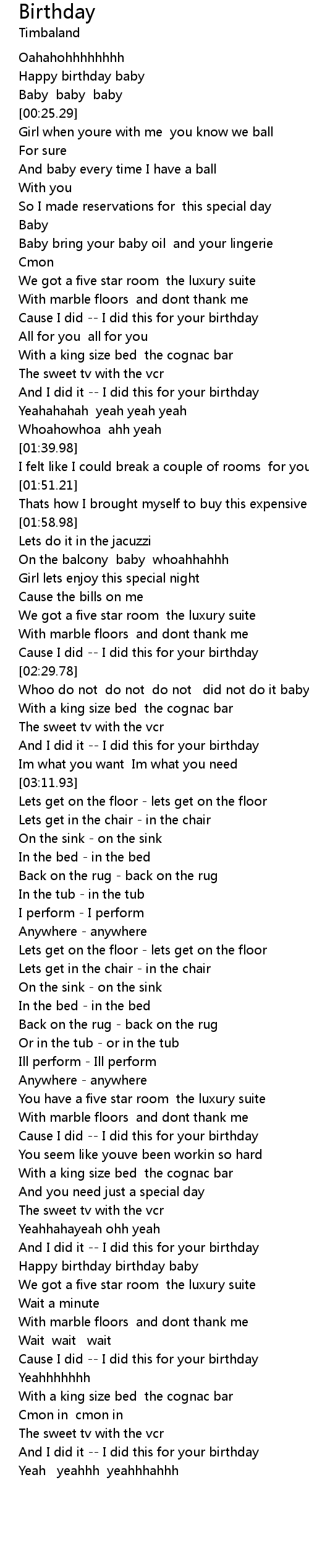 | [04:26.21] | Happy birthday birthday baby |