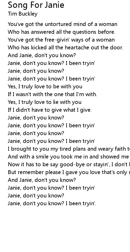 Janie, don't you know? I been tryin' |