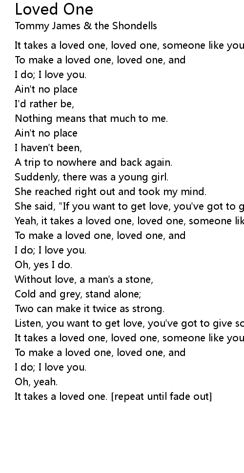 Yeah, it takes a loved one, loved one, someone like you, babe |
