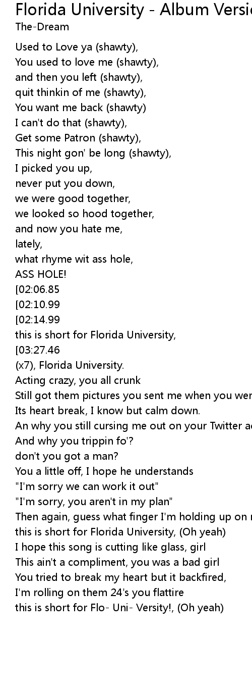 | [03:07.20] | this is short for Flo- Uni- Versity!, (Oh yeah) |