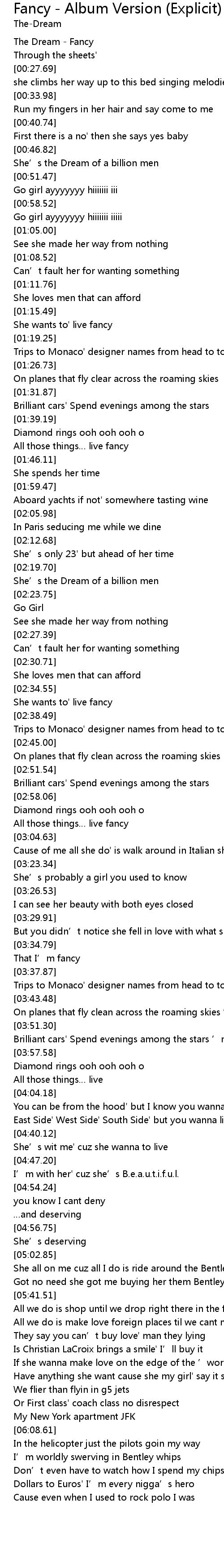 | [00:01.14] | The Dream - Fancy |