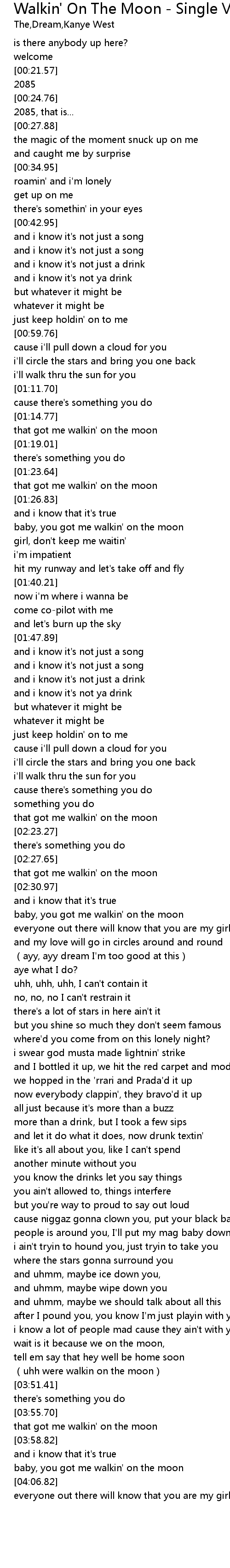 | [03:49.80] | (uhh were walkin on the moon) |