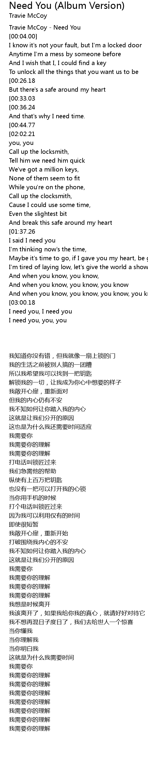 Travie McCoy - Need You |