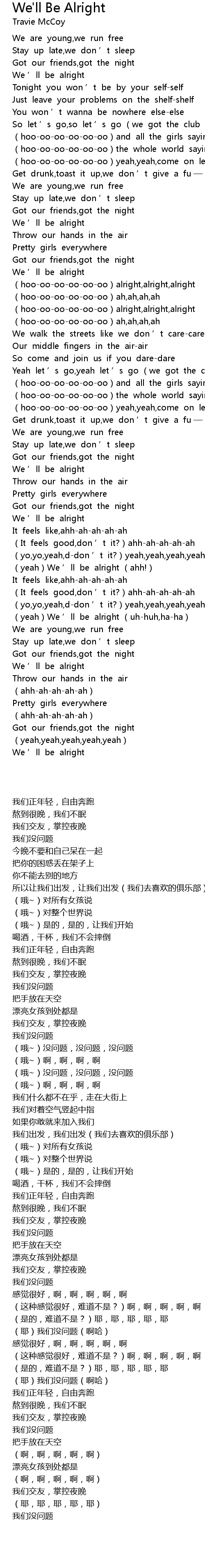 | [02:40.950] | yeah We ' ll be alright uhhuh, haha |