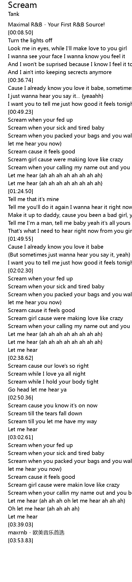| [03:21.49] | Scream when your callin my name out and you beggin me for more |