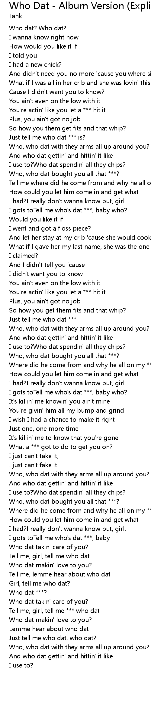 Just tell me who dat, who dat? |