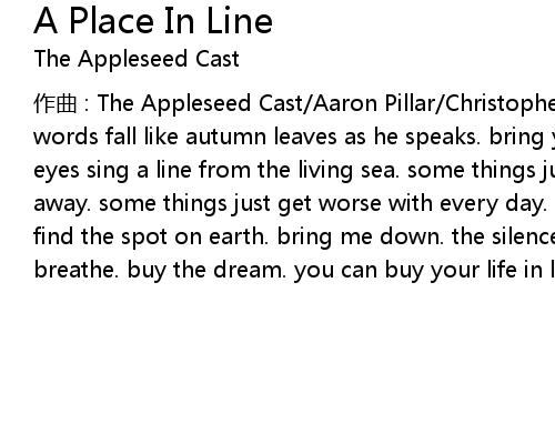| 作曲 : The Appleseed Cast/Aaron Pillar/Christopher Crisci | |