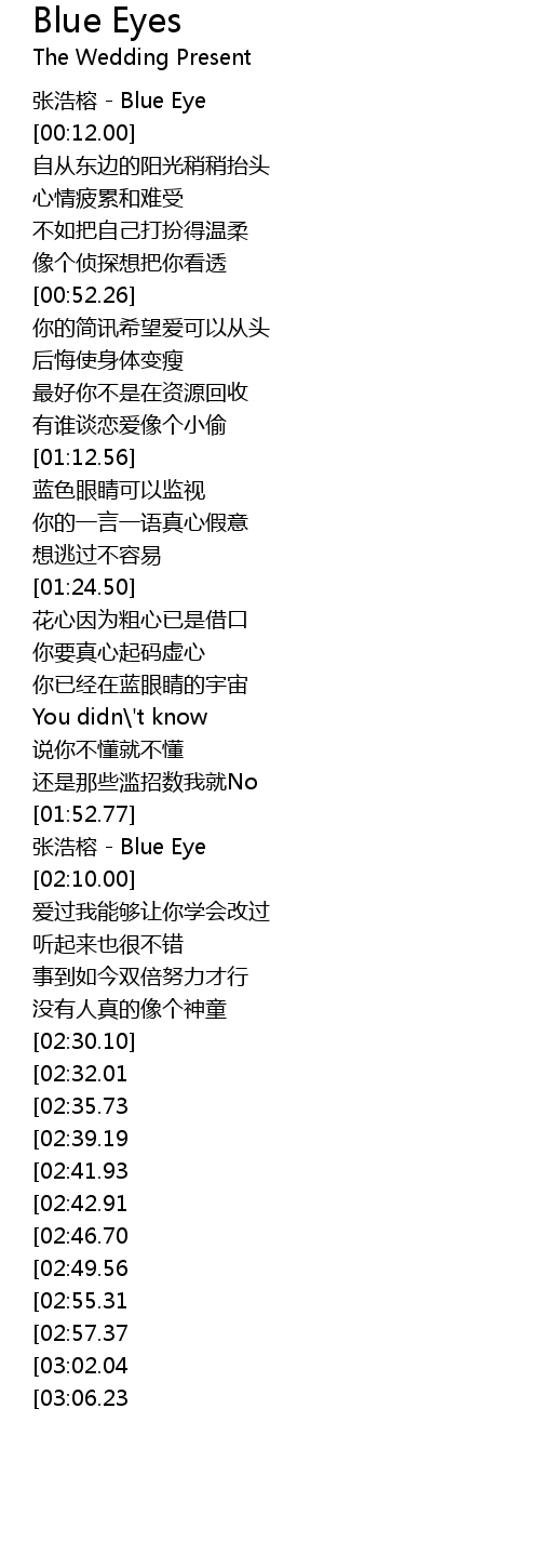 | [02:02.35] | 张浩榕 - Blue Eye |