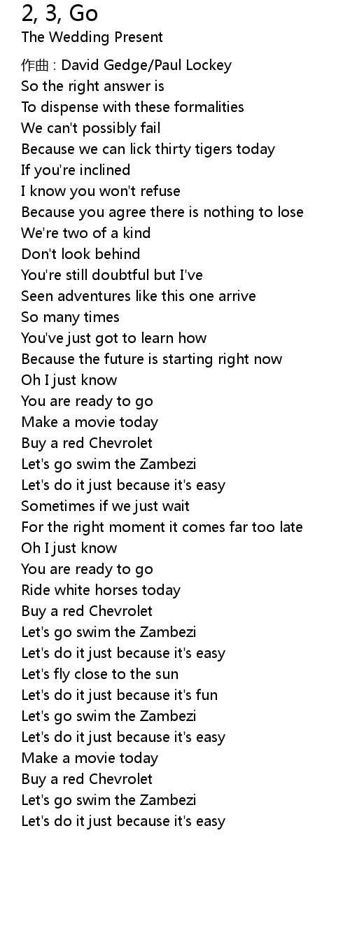 | 歌曲 | 2, 3, Go |
