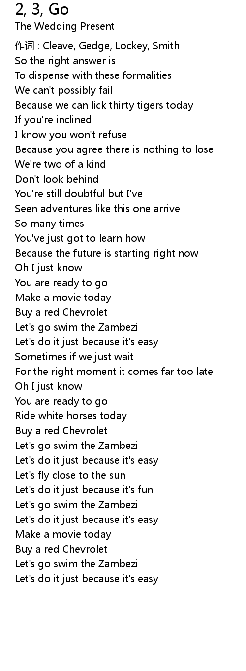 | 歌曲 | 2, 3, Go |