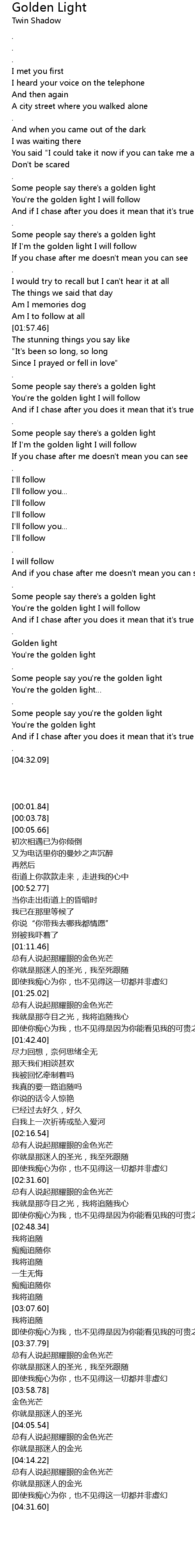| [03:48.59] | You're the golden light I will follow |
