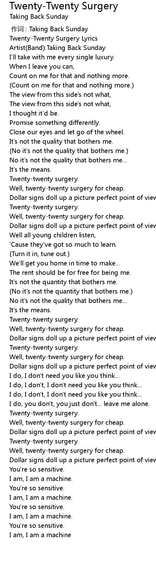 | [00:03.28] | Twenty-Twenty Surgery Lyrics |
