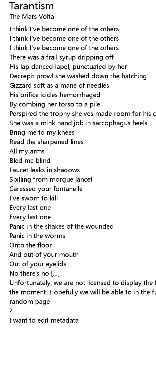 Unfortunately, we are not licensed to display the full lyrics for this song at the moment. Hopefully we will be able to in the future. Until then, how about a |