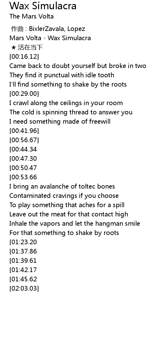 | [00:01.53] | Mars Volta Wax Simulacra |