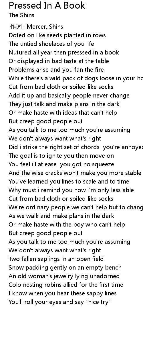 | 歌曲 | Pressed In A Book |