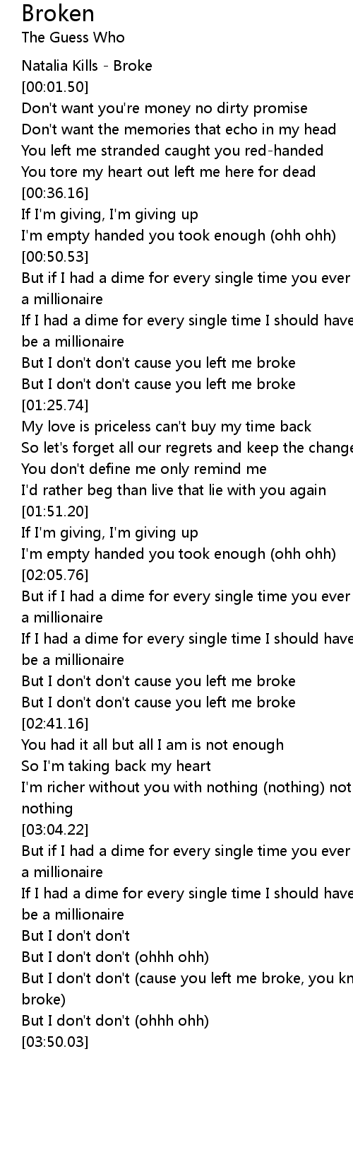 But I don't don't (cause you left me broke, you know you left me broke) |