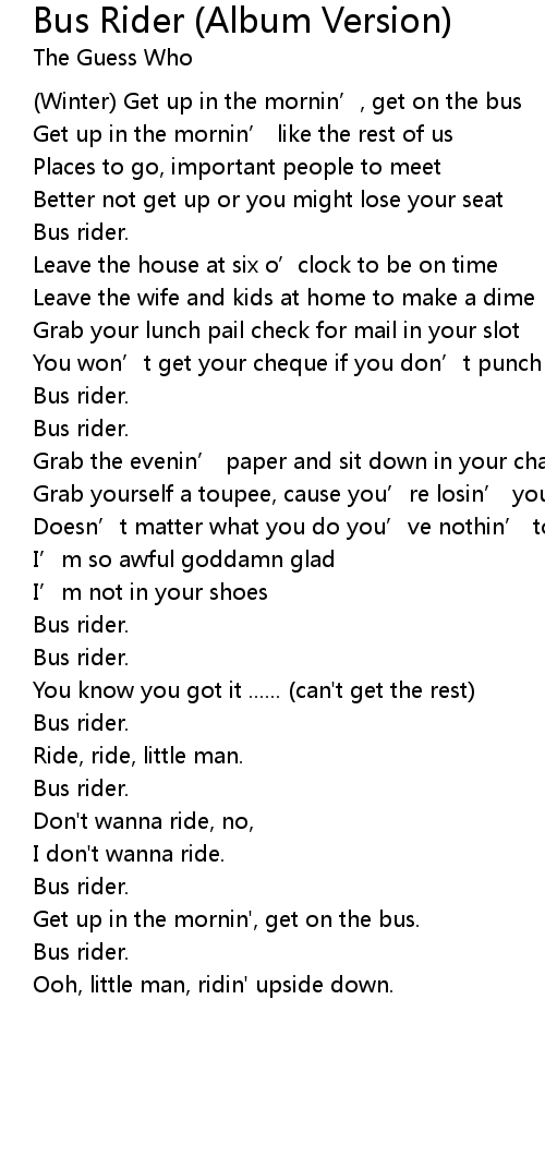 | Get up in the mornin', get on the bus. | |