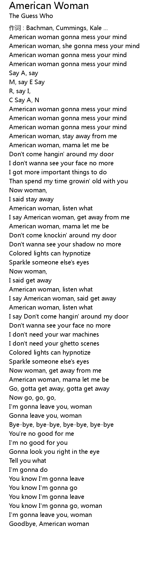 | I say American woman, said get away | |
