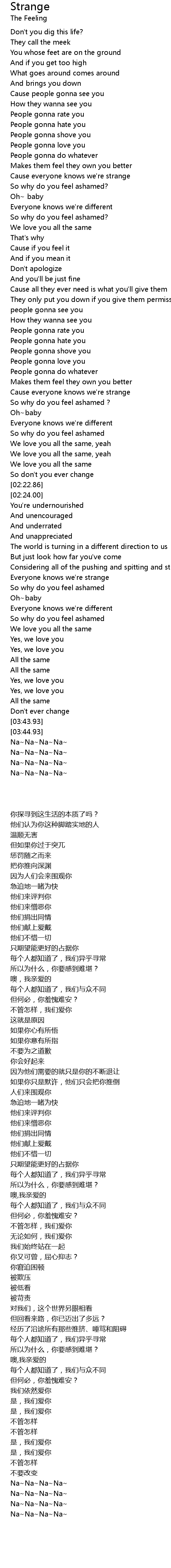 | [02:53.81] | Everyone knows we're strange |