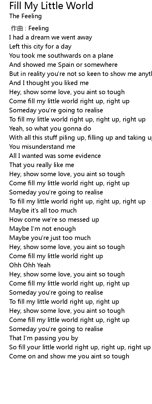 | [00:50.11] | To fill my little world right up, right up, right up |