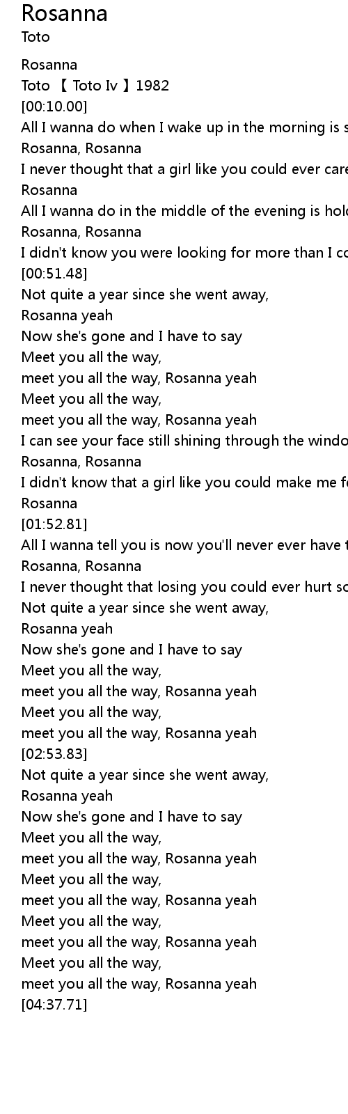 | [04:16.77] | meet you all the way, Rosanna yeah |