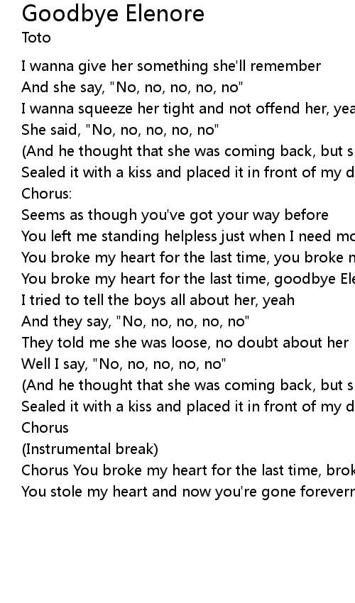 Chorus You broke my heart for the last time, broke my heart, it's the last time |