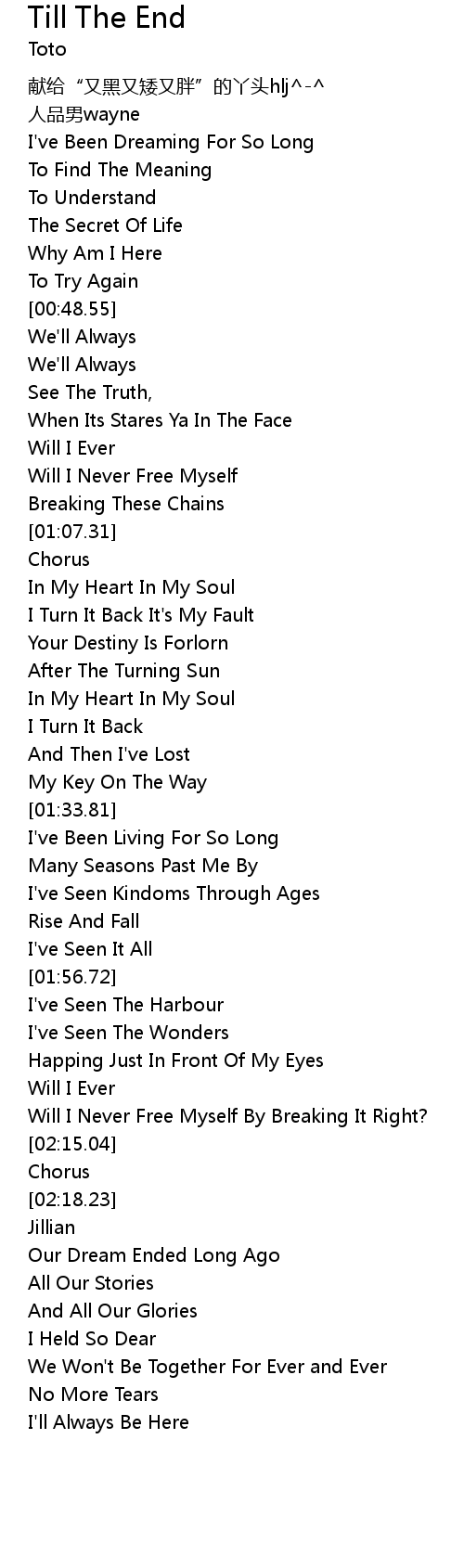 | [02:17.06] | Chorus |