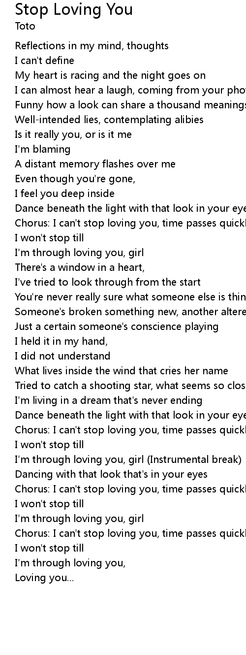Chorus: I can't stop loving you, time passes quickly and chances are few