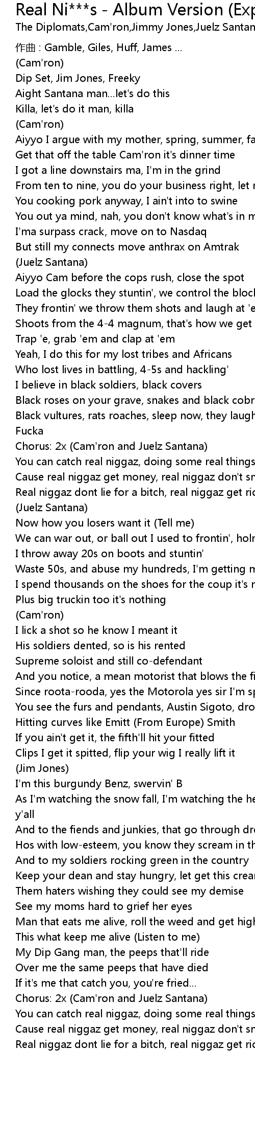 | 歌曲 | Real Ni***s - Album Version (Explicit) |