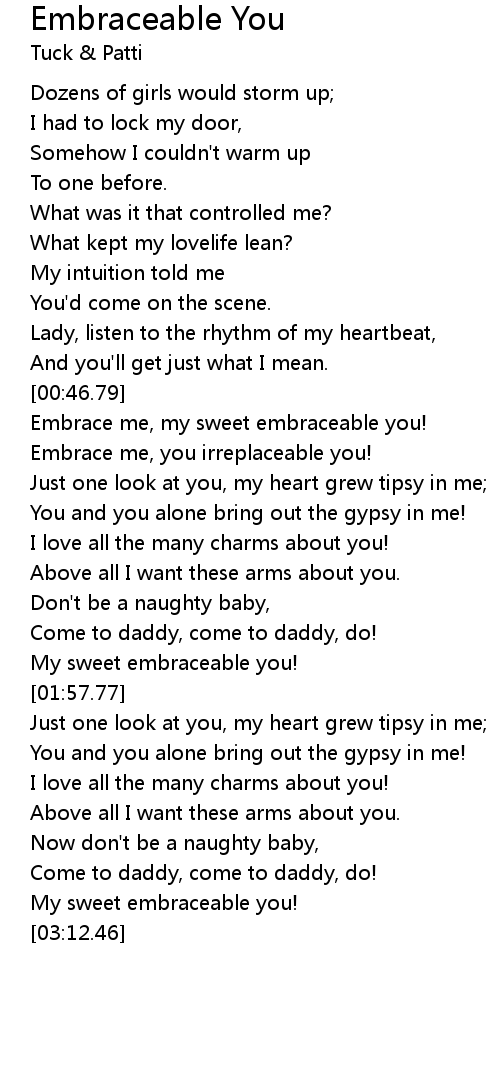 [00:51.05] Embrace me, my sweet embraceable you!