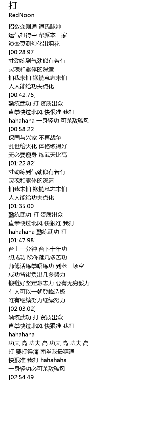 | [01:43.95] | hahahaha 勤练武功 打 |